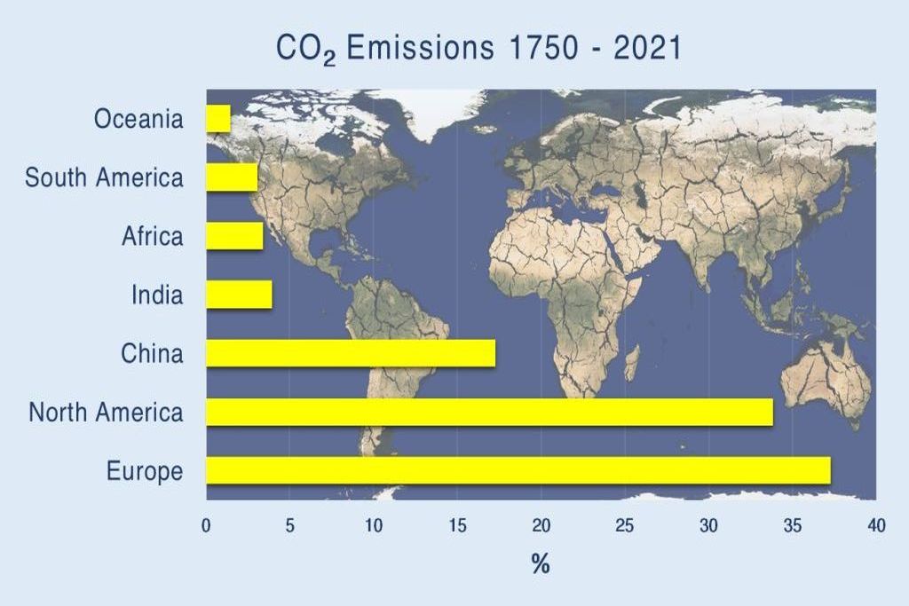 The Global North's share of Global Warming to date is over 60 %, China's share is around 15 % and the share of all other countries together is around 24 %.