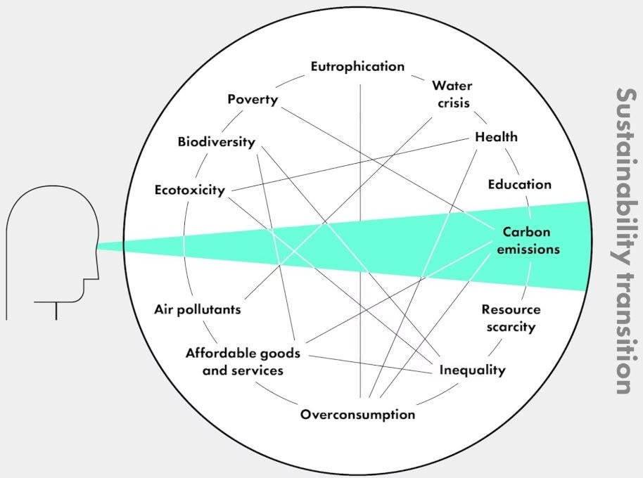 Wenn wir über den Klimawandel sprechen, sind wir allzu oft im sogenannten 'Kohlenstoff -Tunnelblick' gefangen. Das bedeutet, dass wir beim Thema Klimawandel nur an die Treibhausgas - Emissionen denken. Dadurch wird der Blick auf das Ganze verstellt.