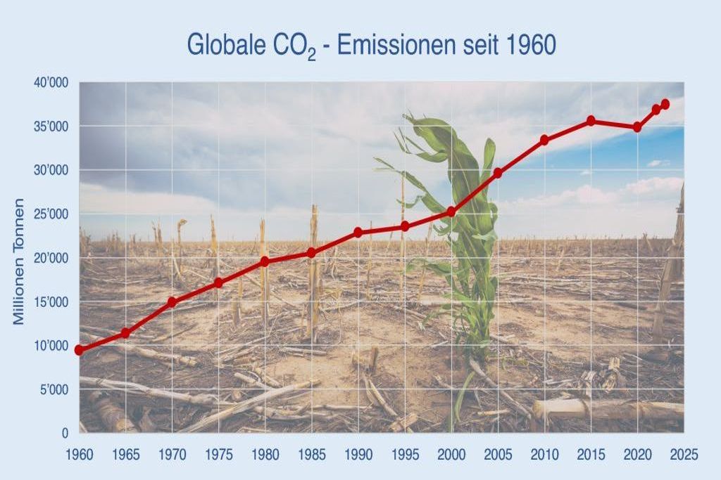 Im Jahr 2024 werden 37.4 Milliarden Tonnen CO2 aus fossilen Brennstoffen ausgestossen.