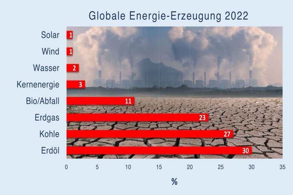 Fossile Brennstoffe erzeugen heute etwa 80 % der weltweit verbrauchten Primärenergie.