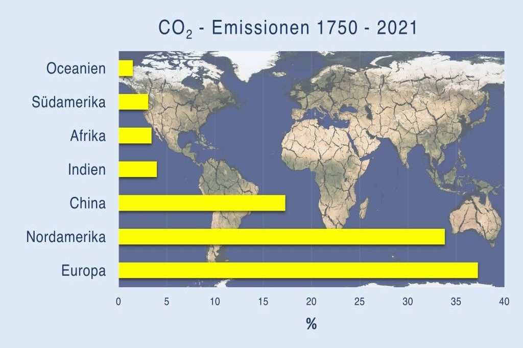 Der Anteil des Globalen Nordens an der bisherigen Erderwärmung beträgt über 60 %, der Anteil von China rund 15 %, der Anteil aller andern Länder zusammen rund 24 %.